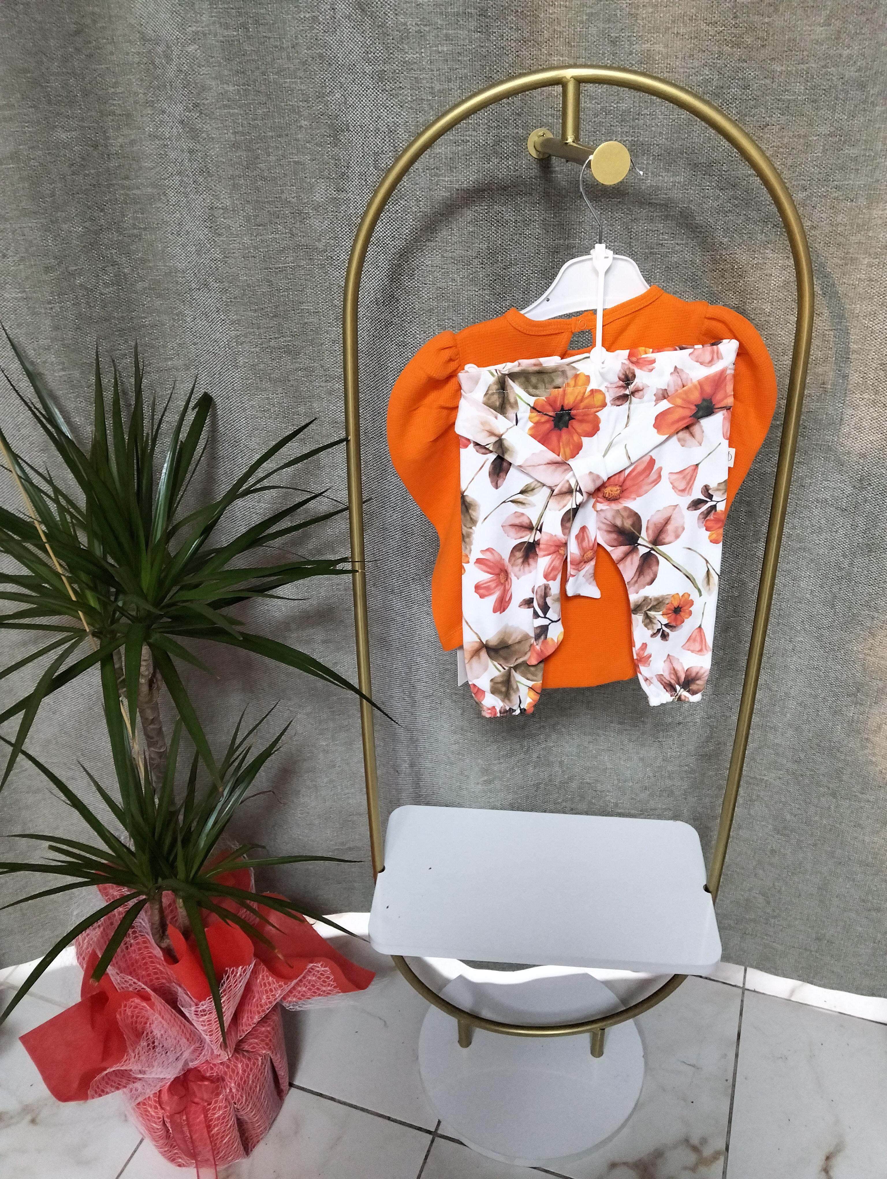 Turuncu Çiçekli Zıbın Kız Bebek Takımı